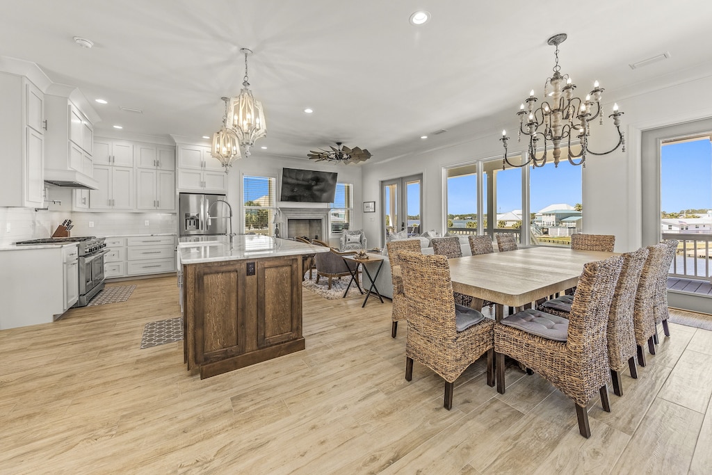 4 Bedrooms • 4 Bathrooms (3 full, 1 half) 4 Baths (3 full, 1 half) • Sleeps 1-18Incredible high-end home with water views located in highly sought after West Beach neighborhood. Amenities include private sand volleyball court, outdoor bar, private hot tub, marble countertops, private dock, outdoor entertainment, basketball goal, cornhole, and games. Home is decorated for the holidays.